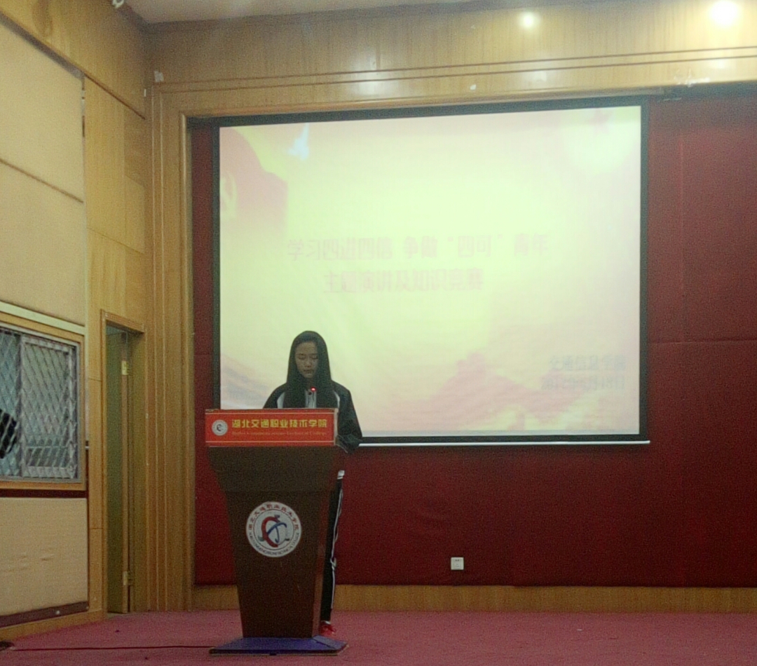 首先,主持人李曼通过视频让大家对“四进四信”的精神,即以“进支部、进社团、进网络、进团课”的“四进”为手段,引导帮助广大青年学生和高校团学干部进一步牢固树立对党的科学理论的信仰,坚定走中国特色社会主义道路,实现“中国梦”的信念,增强对党和政府的信任,增进对以习近平同志为总书记的党中央的信赖有了大致的认知。随后是演讲比赛环节,选手们分享了自己对四进四信的认知和理解,大家都谈到将积极自觉用讲话精神武装自己的头脑,发挥自身的旗帜作用,积极向所联系的班级,向身边的同学传播正能量,感召大家以蓬勃向上的活力和有所作为的心态投入学习“四进四信”精神的活动中,激发当代大学生的社会责任感和爱国情怀的正能量。随后进行的是“四进四信”知识竞赛,比赛中参赛代表队由于前期准备充分,回答问题都十分快速准确,比赛竞争很激烈,各队的成绩也是相互赶超。最后来自于1603052班的刘晓月、1603053班团支部分别获得了演讲比赛和知识竞赛的第一名。