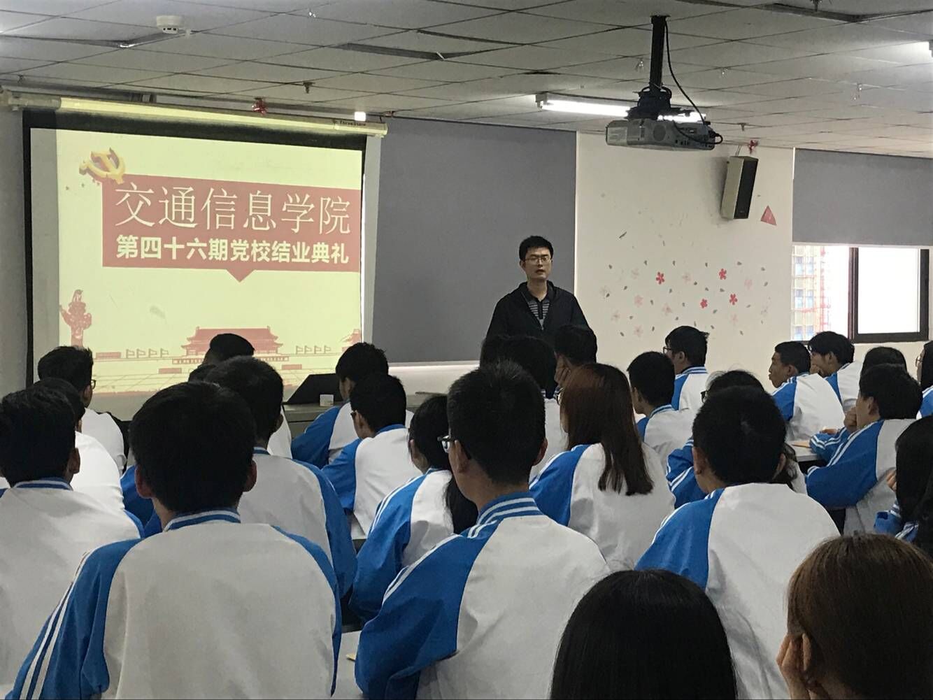 5月10日中午,我校交通信息学院在图书信息大楼804教室举行第46期入党积极分子培训班结业典礼,70余名学员经过考核后顺利结业。交通信息学院学生党支部书记刘桥和纪检委员叶梓参加此次活动,结业典礼由学生党支部书记刘桥主持。