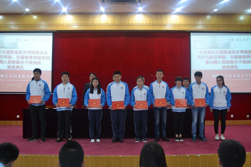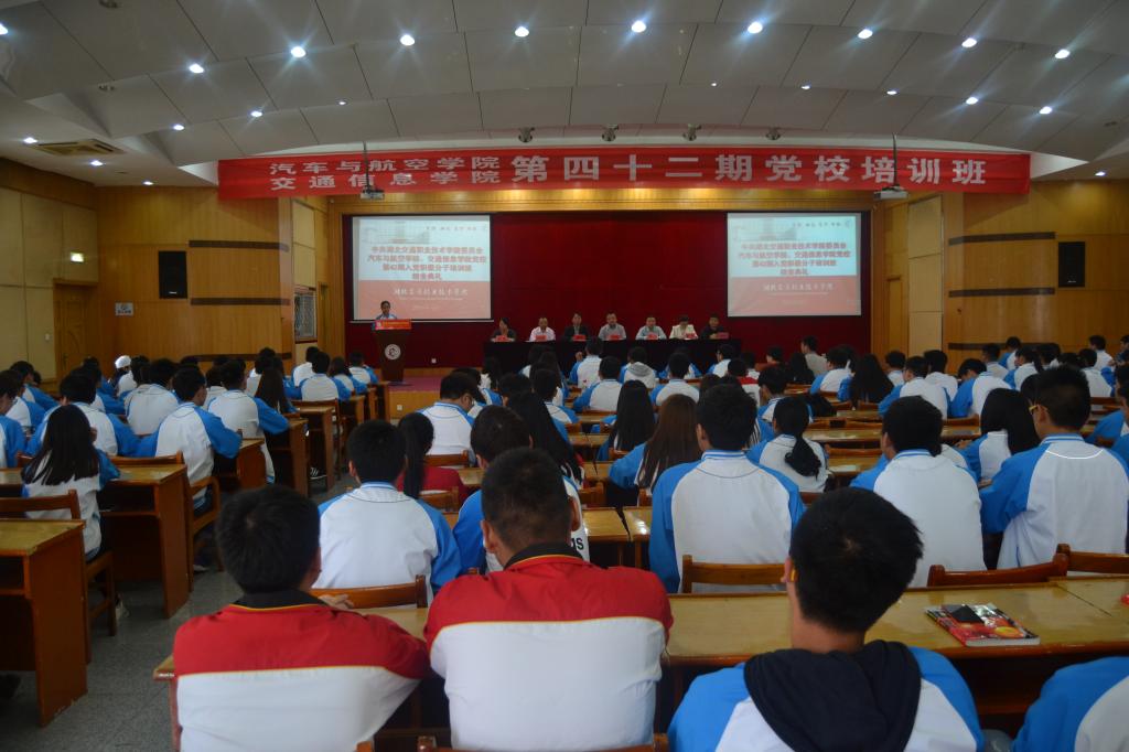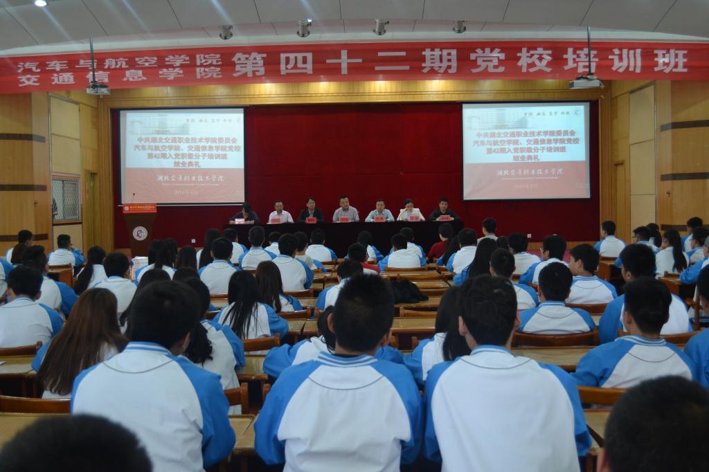 2016年4月27日中午12点30,汽车与航空学院、交通信息学院第42期入党积极分子培训班结业典礼在A栋五楼学术报告厅圆满举行。学校学工处、思政处、团委负责人及两个学院的主要领导参与了活动,交通信息学院院长邹珺主持活动。