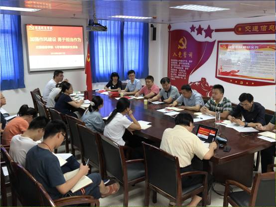 政治学习环节,罗星海同志深入解读习近平总书记视察湖北重要讲话精神,围绕“四个切实”、“五个关系”、“八个坚持”,提出了作风建设在推进学校“两大建设、助力交通”四大攻坚战中的重要意义。