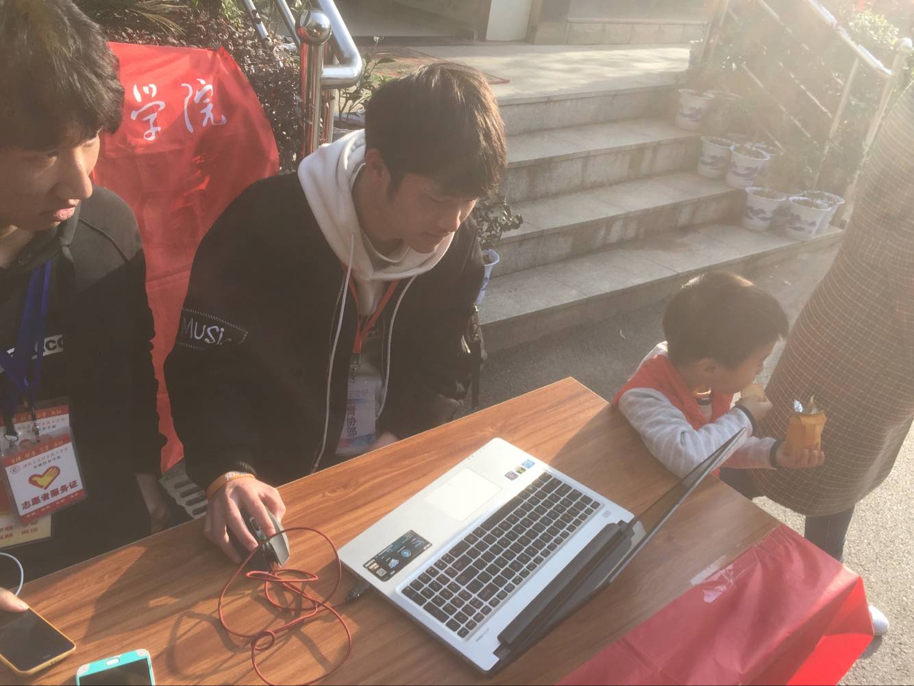 本次活动志愿者分成两组,一组进行上门服务,另一组则设立专门的志愿服务点。记者现场看到,前来维修的居民络绎不绝,志愿者们细心地为居民们检查电脑问题并帮助他们解决。“同学你好,我这台电脑坏了好长时间了,麻烦你帮忙看看还能不能用好吗?”社区居民毛先生拿着一台电脑来到志愿服务点。志愿者检查后发现系统出了故障,在征得毛先生的同意之后,志愿者现场免费为其重装了系统。