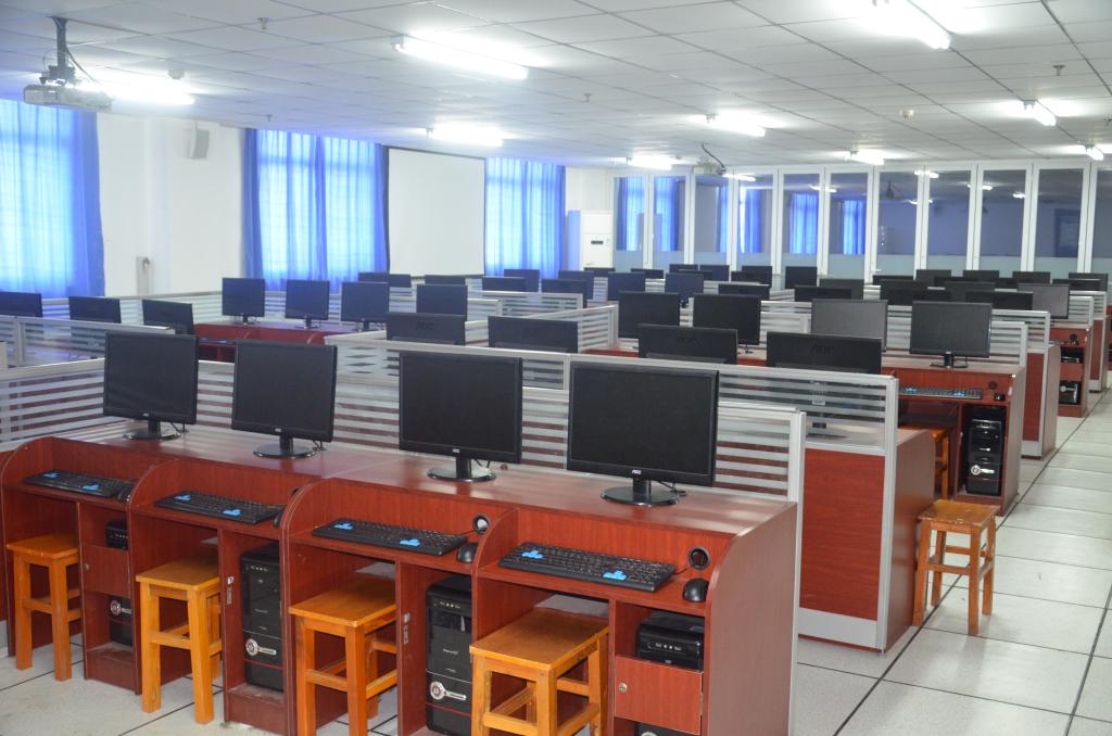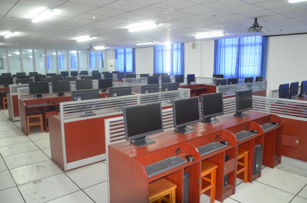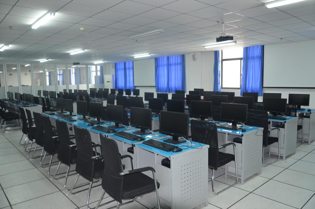 分为5间,共由310台计算机组成,安装有各类编程软件、数据库软件、网页设计软件等,可供学生进行软件设计、网页设计等教学实训。